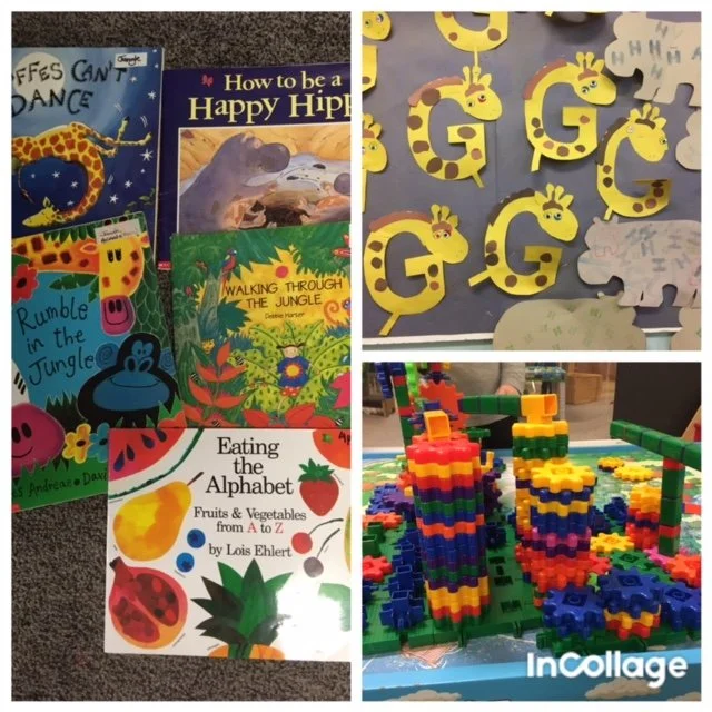 “G” had us making G-shaped giraffes, then stamping hippos with the letter “H”.