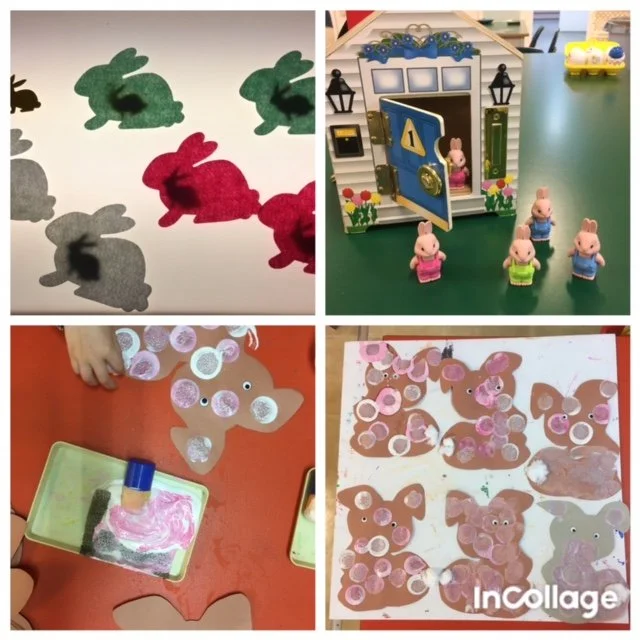 * Engaging with the felt stories “5 Little Chicks” and “Find the Easter Bunny Behind the Egg”.