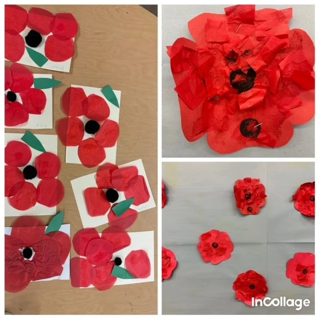 We spent two days commemorating Remembrance Day, talking about avoiding conflict by using words rather than aggression. We read a story about a dog that helped soldiers during the First World War, and talked about poppies symbolizing Peace and Remembrance. We made our own tissue paper poppy pictures. The house corner became a Vet’s office and Animal Hospital, and the following week we swapped the animals for dolls, and it became a Doctor’s Office.