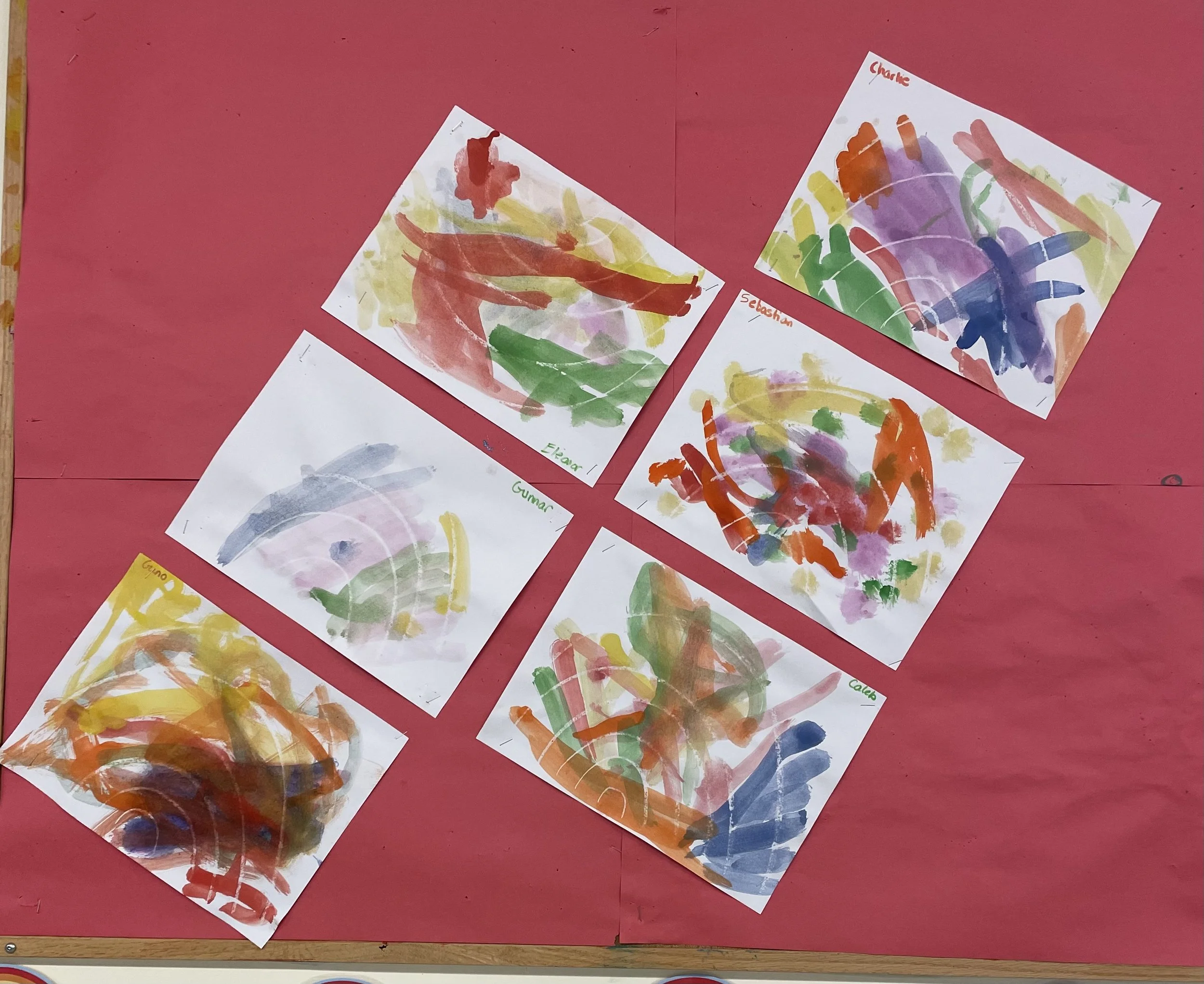 Art activities for rainbows involved wrapping clear plastic over paper, where children created designs by squishing around the vibrant paints inside. We also used block paint and crayons to create rainbow colours.