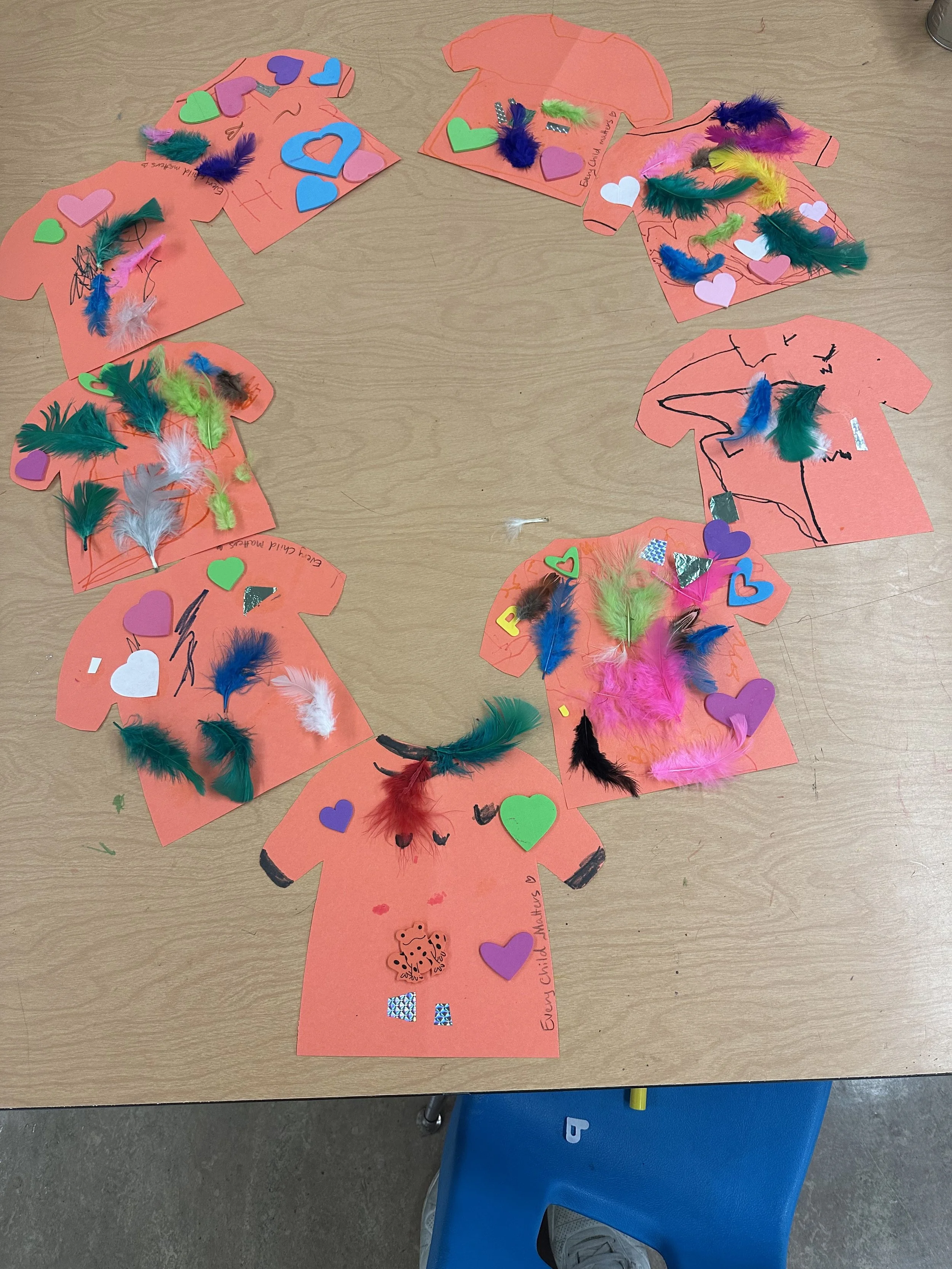 During the last week of the month, we continued the Friends and Family theme. For art, we used Q-tips and handprints to decorate our houses and stamped people shapes onto paper to make our family. We read the books We Are All Alike But Different, Families, and How to Grow a Friend. We talked about the National Day for Truth and Reconciliation by discussing kindness, acceptance, and celebrating everyone’s uniqueness. We danced and listened to the music The Dream Catcher in a circle and read With Our Orange Hearts. For art, we stamped hearts onto orange shirts to represent uniqueness and love.